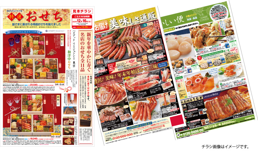 食品カタログ制作にも20年以上の実績。商品の美味しさをお客様に分かりやすくお伝えするカタログ・チラシを制作いたします。